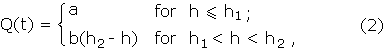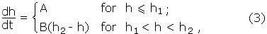 where h1 is the height at which the float is engaged, h2 is the cut-off height, and a and b are constants. Combining with (1) leads to the initial value problem: