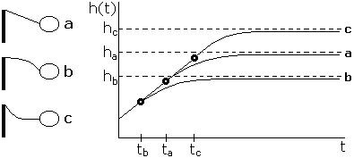 where C = (h2 - h1)eBt1 and h(t1) = h1 . The model predicts a linear rise in h, followed by bounded exponential growth after the float is engaged. Values for A, B, and the cut-off height h2 can be obtained from the data, and this provides some elementary lessons in data analysis. A linear regression on the data for h < h1 gives a value for the slope A. Another regression, this time on a linearized plot of ln(h2 - h) vs. t for the data with h > h1, gives a value for the slope -B (see Figure 3). Figure 3: Re-expressed Toilet Data Picking a value for the cut-off height h2 is slightly tricky: Using the actual cut-off from the data leads to the unacceptable ln(0); and the regression is quite sensitive to small perturbations of h2 above this value. In Figure 3, a value of h2 that is 0.1 cm above the actual cut-off has been chosen. Once all of these values are obtained, a plot of the analytic solution through the data gives a good confirmation of the analysis. Of course, it must be noted here that the theoretical toilet never actually shuts off. The model can be modified to reflect the discontinuous jump to the cut-off height, simply by adding a third height interval to (1). It is equally instructive, however, to have students discuss the "practical" solution many people apply to an infinitely running toilet: Bending the float stem. The effects of this stratagem are summarized in Figure 4. Figure 4: Bending the Float Stem We see that bending the float stem does nothing to quiet the toilet's high-pitched explorations of the asymptoteit runs on just the same. Rather, the effect is to shift the solution, both horizontally and vertically. The only practical benefit comes from the water that would be saved by the lowered cut-off height in b. By means of such a simple experiment and modeling exercise, students are able to carry away memorable lessons that can be usefully referred to throughout the semester. (There are also the less measurable lessons that come from making the "ancient heavenly connection" to the world outside of the classroom. One group of students, for example, received a sumptuous Japanese meal, free of chargeso proud were the proprietors of the restaurant to have "such mathematics" being carried out in their restroom. This cultural respect for mathematics was less evident at a local Denny's, where another group of students was asked to leave.) I have had students tell me, long after completing this project, that they cannot go to the bathroom without thinking about differential equations. They are usually glaring at me, and I am usually smiling. Footnotes 1From Howl, by Allen Ginsberg, 1956. 2Women's restroom; Shelter Lounge; Tucson, AZ. 3Quoted, e.g., in Rothstein, Emblems of Mind, p. 151; Times Books, 1995. |